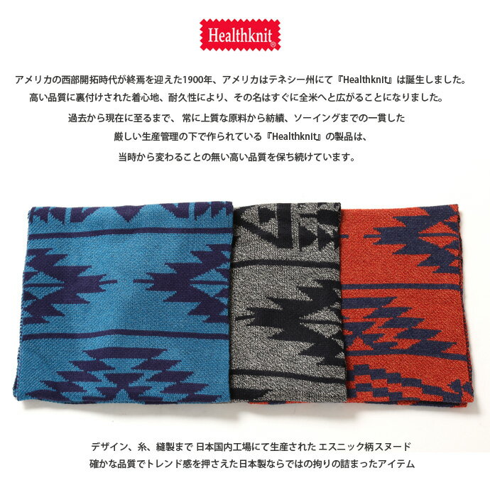 コメント スヌード レディース ストール 大判 コンパクト メンズ スヌード 秋冬 HealthKnit から上品で上質 エスニック柄スヌードの登場! 手軽に巻けて首周りの寒さ対策、防寒として秋冬のマストアイテム 柔らかく心地いい肌触りで、男女問わず使えるのもポイント ペアで、プレゼントや贈り物にもお勧めですコメント HealthKnitから素材から縫製まで日本製のスヌード。